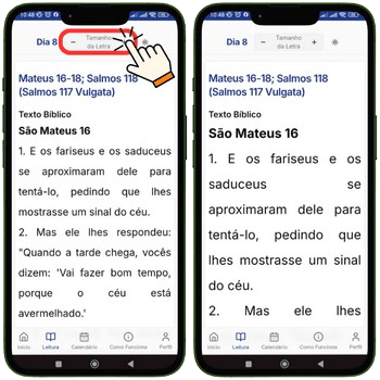 Leitura Confortável: Ajuste o tamanho da letra com um toque.